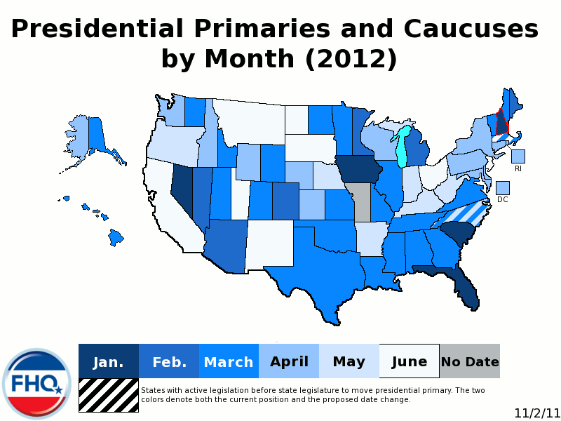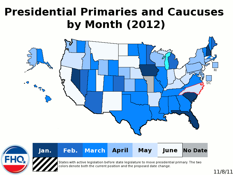 In an earlier critique of this plan, FHQ wondered aloud about the precedent such a waiver from the DNC might set. That, however, was written at a time when it was unclear just how much of a threat Minnesota's caucuses on both sides of the aisle would affect the earliest states. Now that Iowa, New Hampshire, Nevada and South Carolina are set -- for dates well ahead of Minnesota -- the February 7 date represents no threat. With the damage already done, Minnesota is much more likely to get a pass in 2012 on a non-compliant February date than if this had or will happen in a year when the Democratic nomination is at stake.