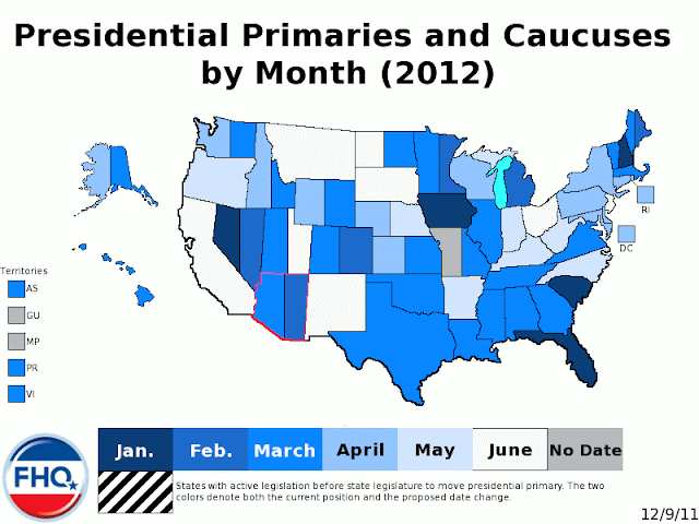 Note: Take note of the fact that the territories have now been added to the map. An updated 2012 presidential primary calendar can be found here.